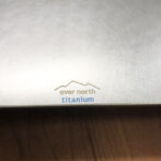 ※over northのロゴに加えて、[titanium]文字もチタンブルーで刻印